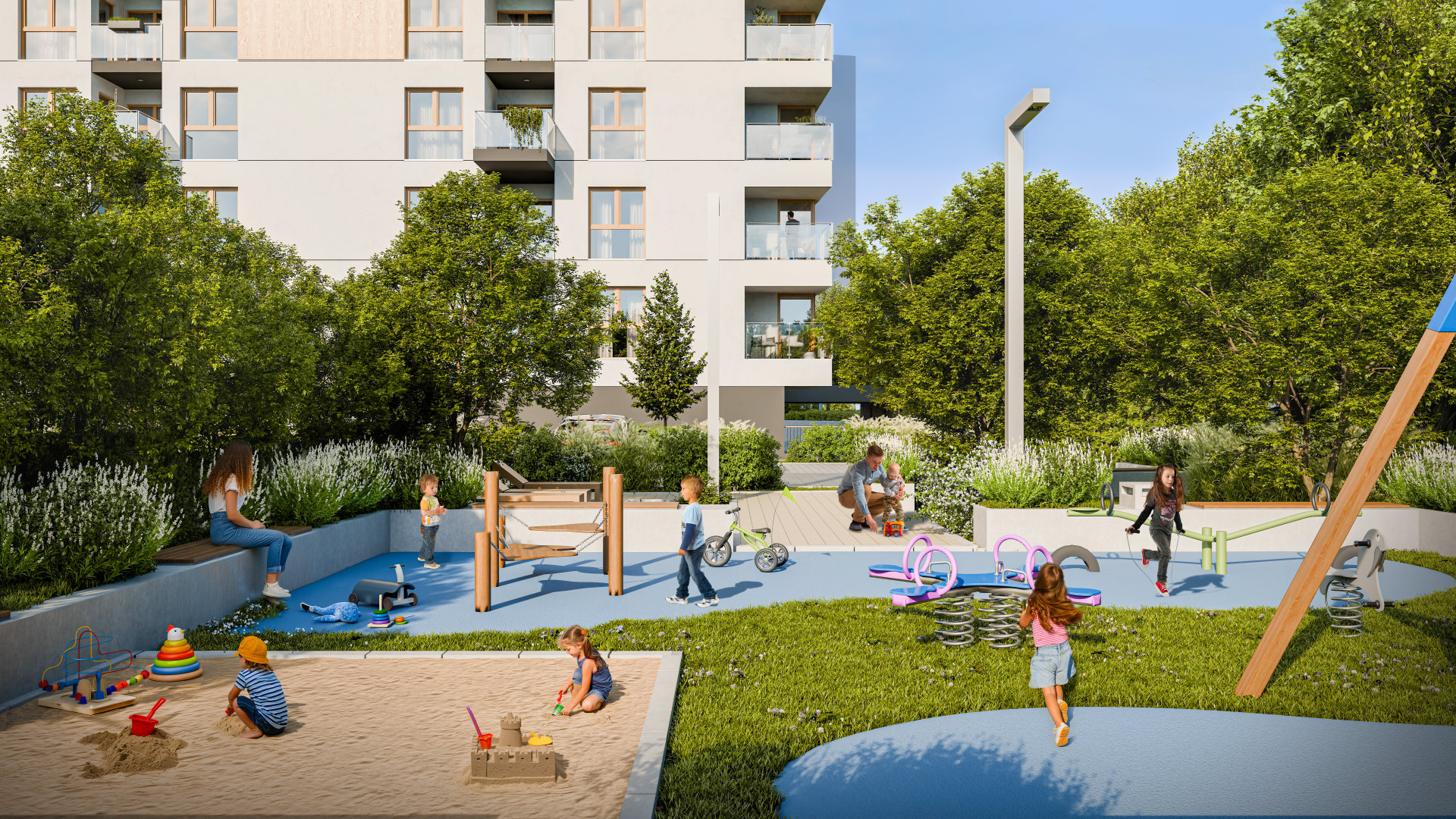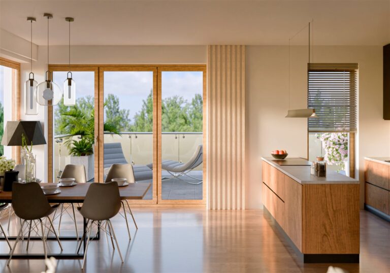 Budynek zaprojektowano tak, by codzienność była naprawdę wygodna. Solidna izolacja termiczna i akustyczna zapewnia komfort o każdej porze roku – ciepło zimą, chłód latem i ciszę, której oczekujesz od nowoczesnego mieszkania. Duże, energooszczędne okna wpuszczają mnóstwo naturalnego światła oraz pomagają ograniczyć zużycie energii. W budynku działają dwie ciche, niezawodne windy, dzięki którym poruszanie się między kondygnacjami jest bardzo komfortowe.