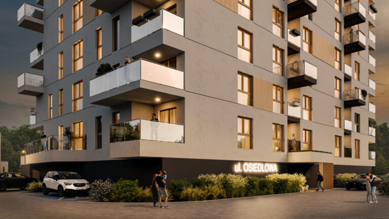 Osiedle 5 Stawów to nowoczesna inwestycja w spokojnej części Katowic, zaprojektowana z myślą o komforcie i estetyce codziennego życia. Prosta, elegancka architektura budynków współgra z naturalnym otoczeniem oraz pobliskim stawem Morawa, tworząc miejsce, do którego wraca się z prawdziwą przyjemnością. Na terenie osiedla zaplanowano plac zabaw i zielone przestrzenie wspólne, które tworzą przyjazne, spokojne otoczenie dla wszystkich mieszkańców.
